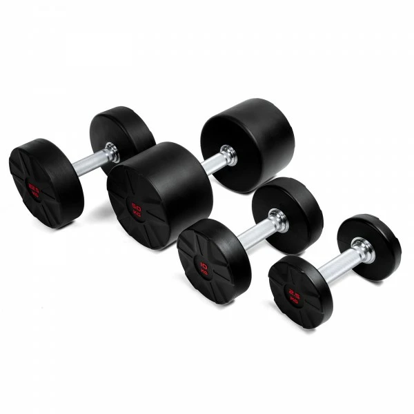 Deze dumbells staan bekend om hun perfecte balans en gewichtsprecisie. De polyurethaan coating maakt de halter zijn slijtvast, beschermt je vloer en zijn stiller in gebruik.